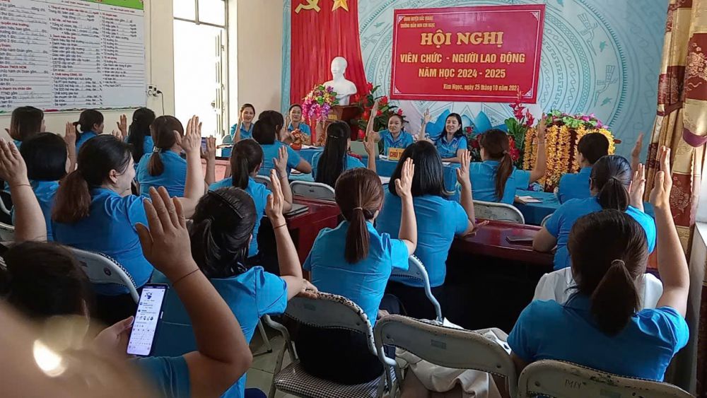 TRƯỜNG MN KIM NGỌC TỔ CHỨC HỘI NGHỊ VIÊN CHỨC, NGƯỜI LAO ĐỘNG NĂM HỌC 2024 - 2025